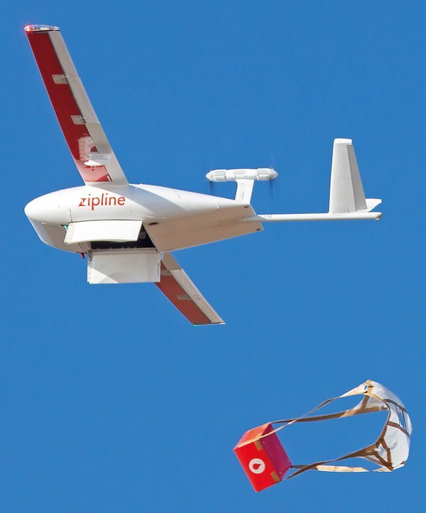 Zipline drone delivering medical supply