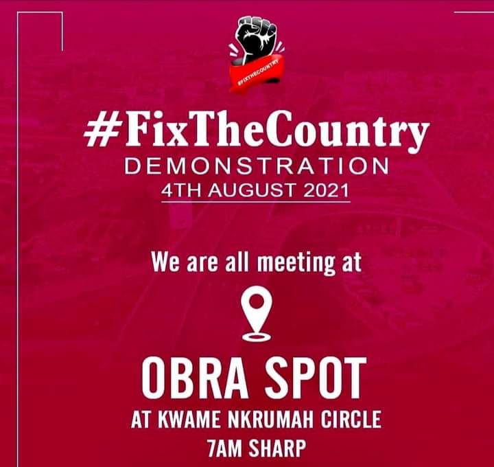 Route and Destination of the protest they say “We ask that all protestors gather near Obra Spot, at The Kwame Nkrumah Circle. The protest march will go through Kwame Nkrumah Avenue, to Farisco Traffic Lights. We will then take a left towards TUC, continue on the road leading past Kinbu Senior High School to join the John Evans Atta Mills High Street, we will then proceed to Independence Square where the Crowd will be addressed and subsequently dispersed.”
