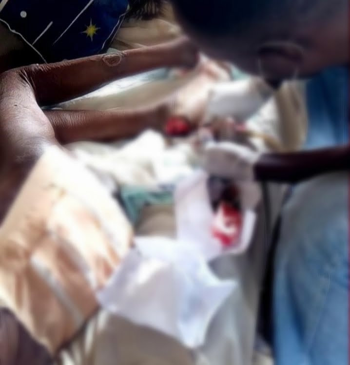 “This was an old lady who could not sit on her own without support, and so transporting her to the Hospital for daily dressing will be a problem. I offered to attend to the woman at home for free. I only asked the relatives to buy gauze, which I sterilised and used for the dressing.