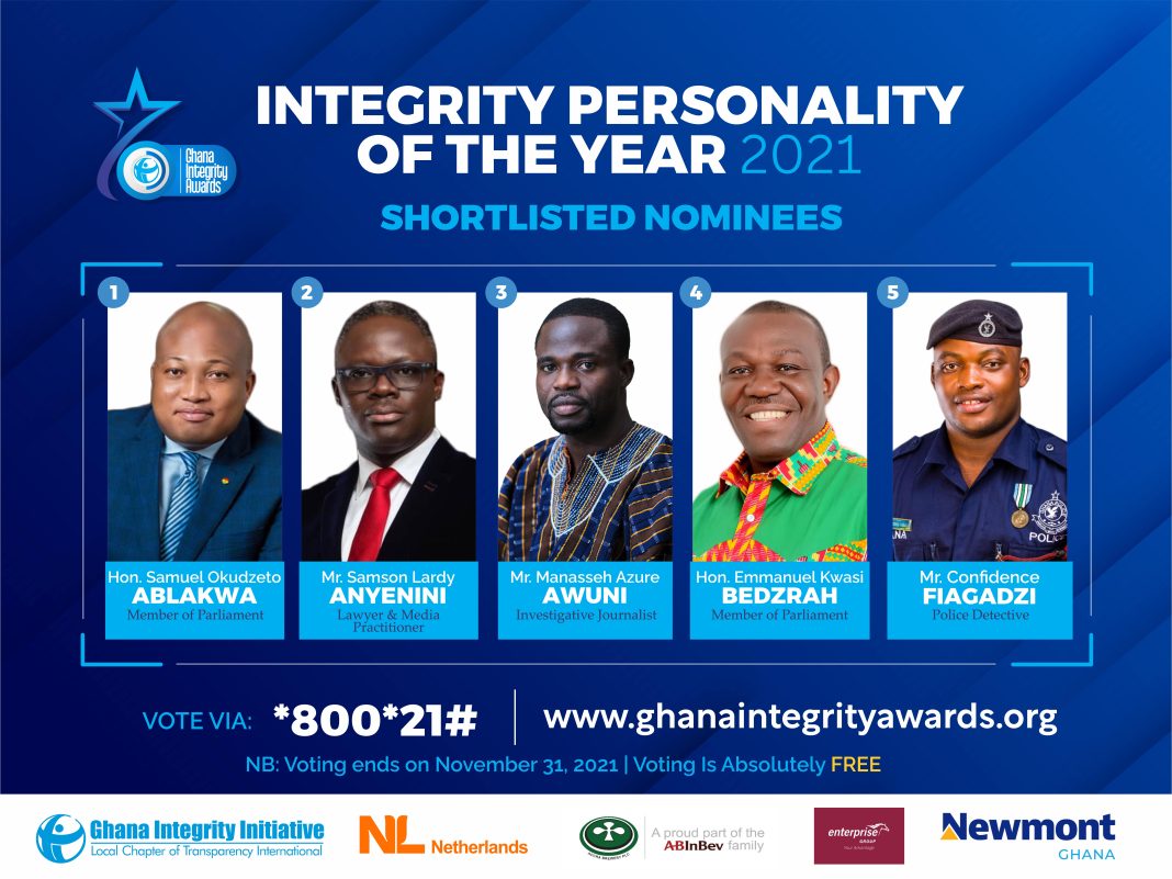 The general public is hereby, kindly requested to contribute to the promotion of integrity and the fight against corruption in Ghana by voting for the Integrity Personality of the Year. Kindly note that the voting process is ABSOLUTELY FREE.