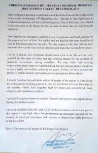 “I should therefore be justified to call on all people of the region to share in the joy of the season by being grateful to God for His infinite love and blessings on our country Ghana. Let’s together fight for peace and avoid tribal, land, religious and chieftaincy conflicts”, portions of the statement read.
