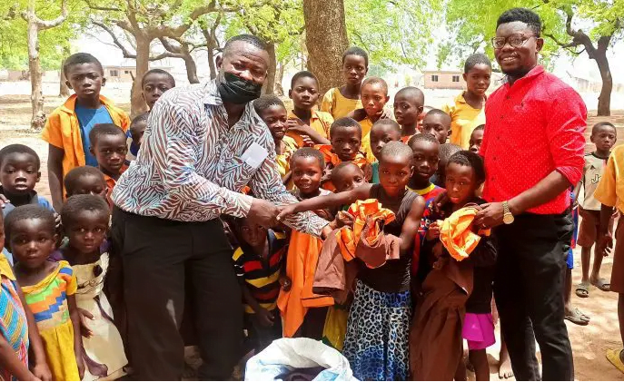 Some pupils of the Naaga Primary School in the Kasena-Nankana Municipality of the Upper East Region today benefitted from the benevolence of one of their teachers, Desmond Kampoe, who donated some 141 sets of school uniforms worth over GHS 6,000 (Six Thousand Cedis) to them.