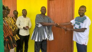 Head of Supervision, Moses Wopugi on behalf of the Kassena-Nankana West District Directorate of Education, recounted the dire situation of the school and as a result, “books were kept in the toilet facility and other materials were kept in a nearby house.”