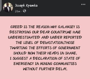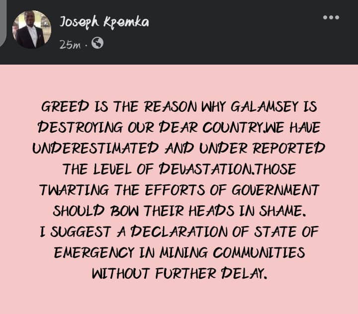Declare state of emergency in mining areas to deal with galamsey – Joseph Kpemka urges gov’t