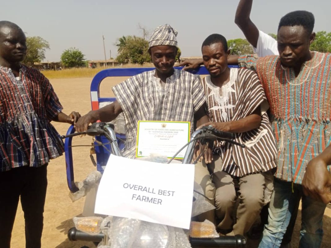 Mr. Adongo Apaare from Gambibgo community was the overall District best farmer. He was given a tricycle, a pair of Wellington boots, a knapsack sprayer, a cutlass and two bags of green fertiliser.