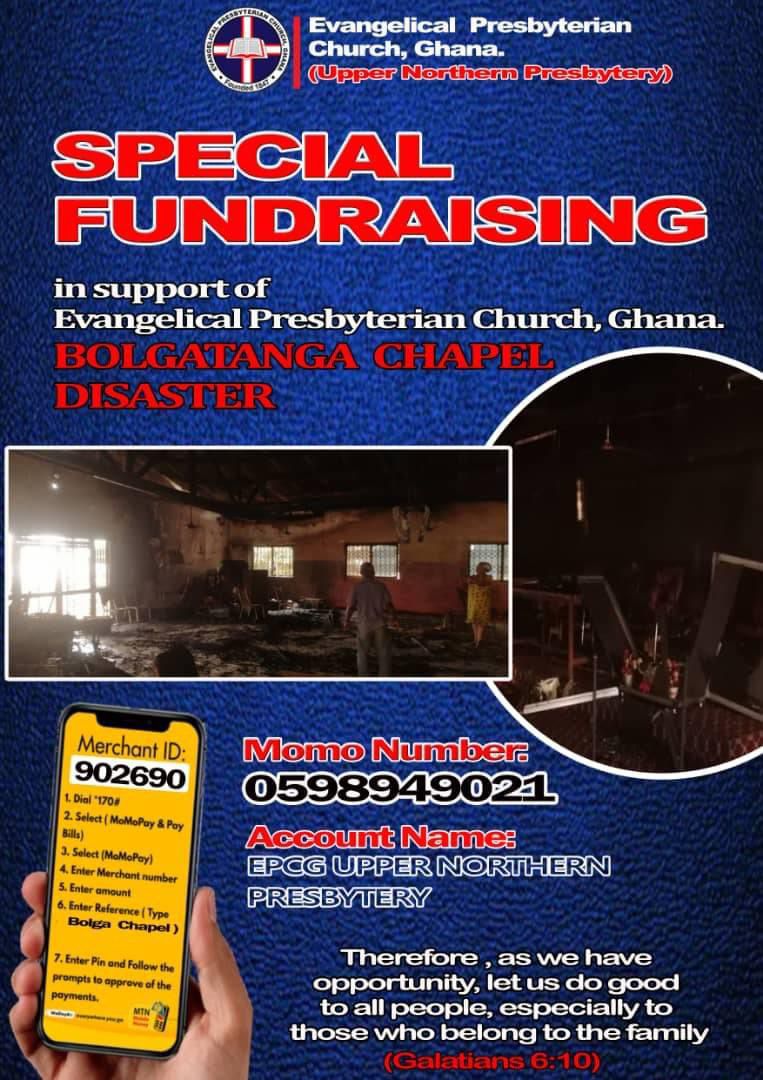 The main auditorium of the Evangelical Presbyterian Church of Ghana in the Bolgatanga Municipality of the Upper East region was ravaged by fire in the early hours of Tuesday.