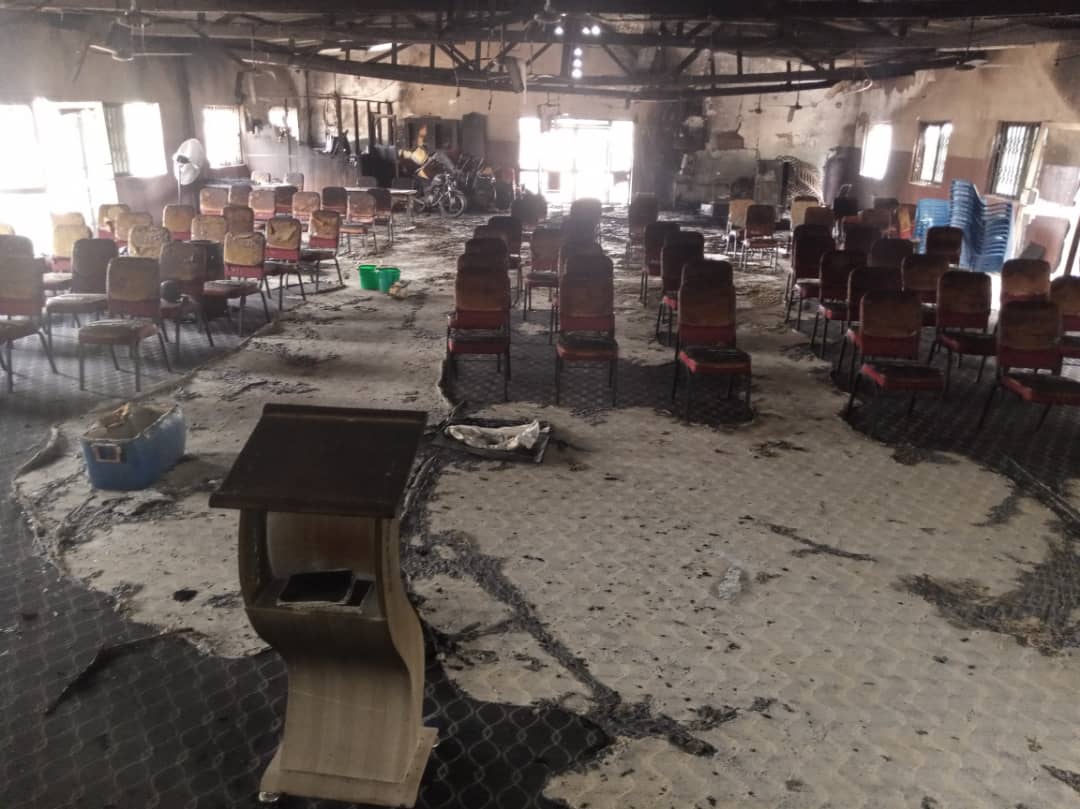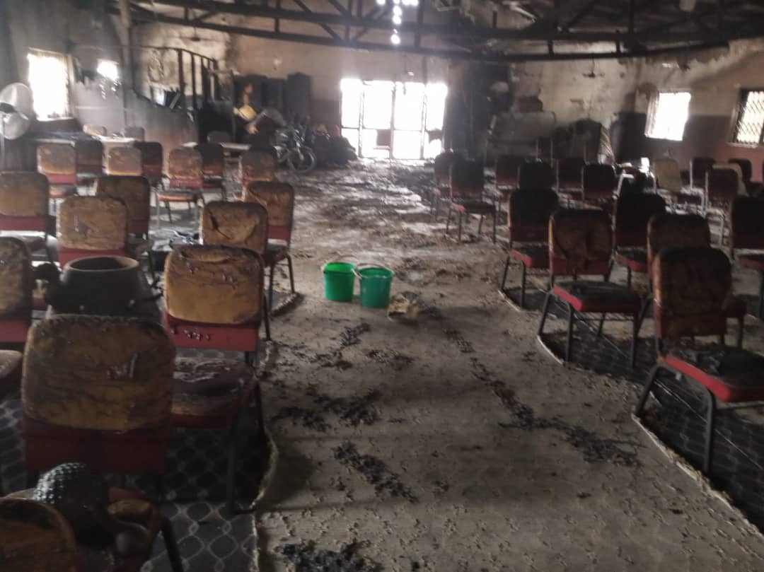 According to him, when the firefighters got to the scene, it took them about an hour or more to bring the fire under control, after which everything in the church was already burned to ashes. These include chairs, tables, sound systems, a motorbike, the entire ceiling, and the carpet, among others.