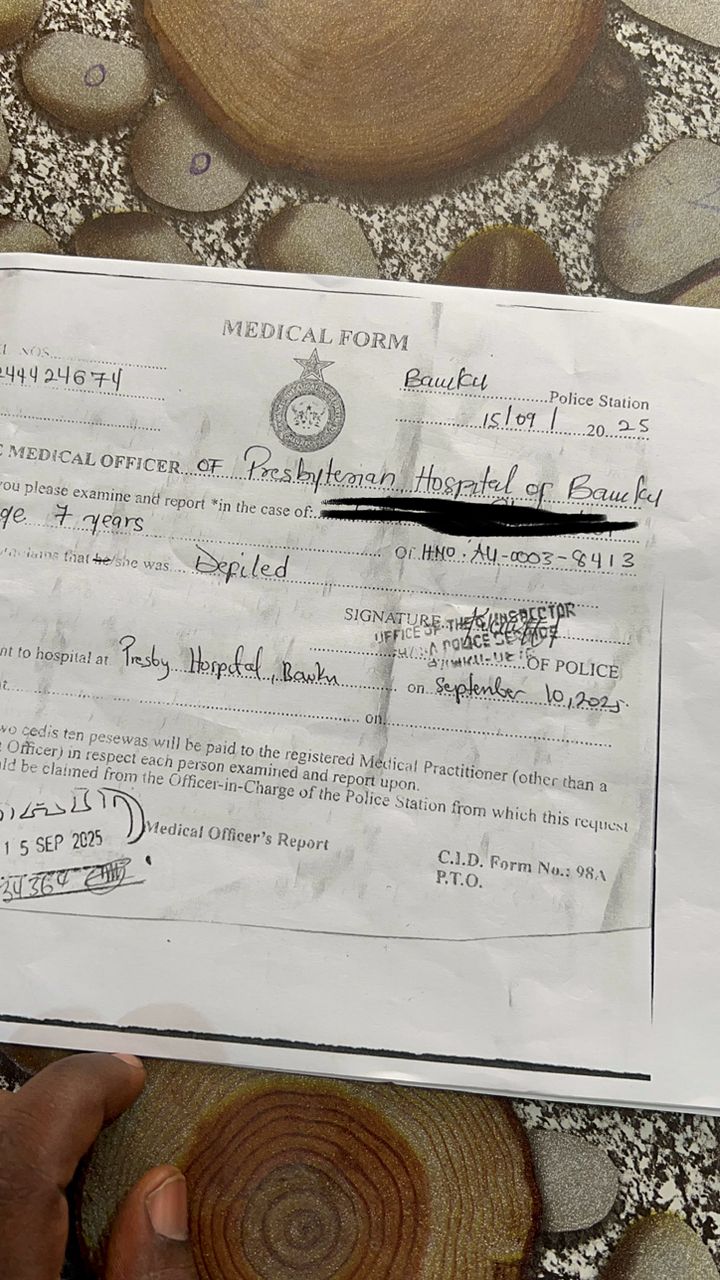 The case was reported to the police, and a medical report form was issued for examination of the victim at the Bawku Presbyterian Hospital.