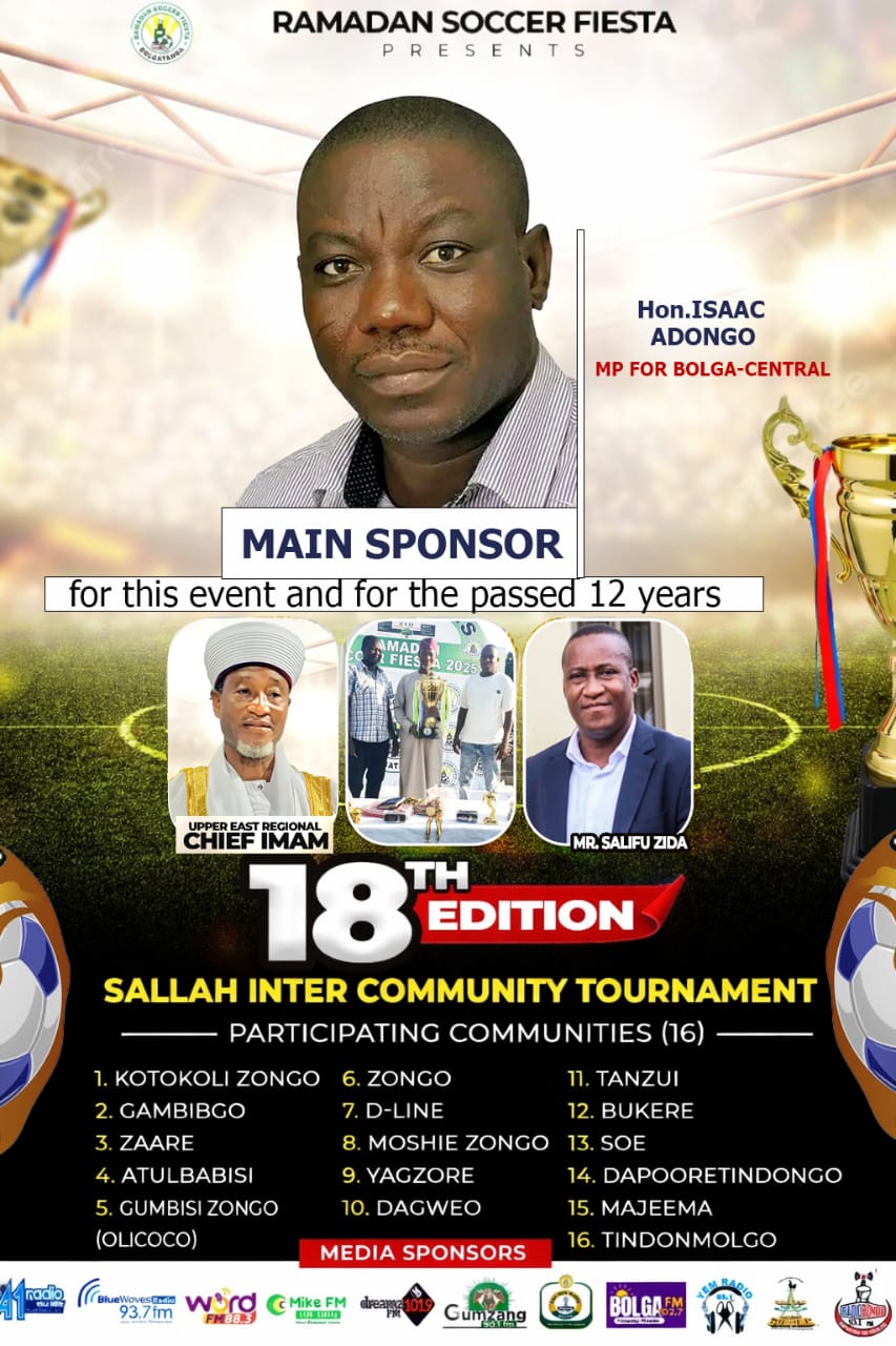 The Member of Parliament for Bolgatanga Central, Isaac Adongo, has again demonstrated his commitment to youth development and community engagement by sponsoring this year’s Ramadan Soccer Fiesta in the constituency.